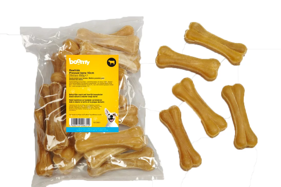 Samenstelling: runderhuid 100%. Analytische bestanddelen: ruw eiwit 84%, ruwe as 1%, ruw vet 2%, ruwe celstof 3%, koolhydraat 10%.
