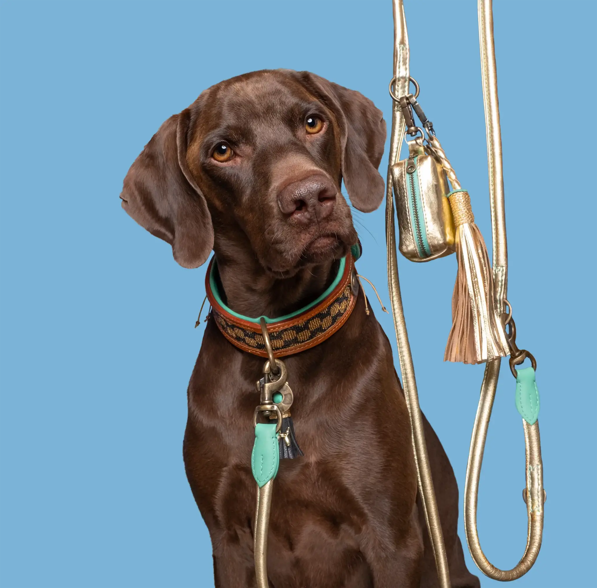 Voeg de Bling poepzakjeshouder en de Golden Moon leren hondenriem toe en shine als nooit tevoren! Combineer fashion en functionaliteit met deze feestelijke combinatie.