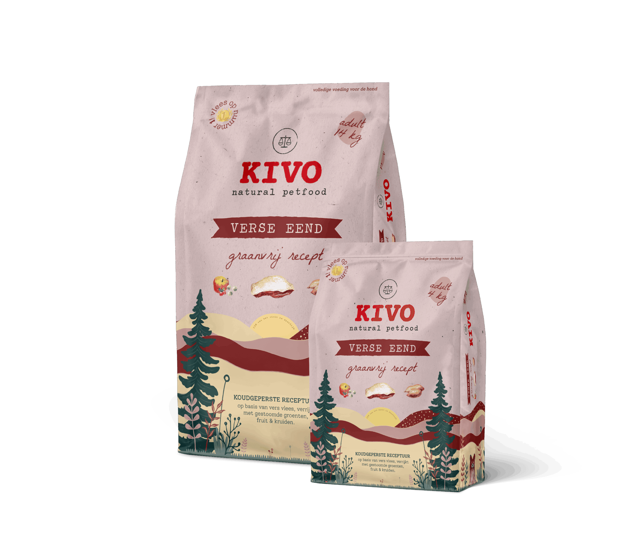 Eend (32.5%; vers: 17.5%- gedroogd 15%), zoete aardappel (28%), erwten (17%), gehydrolyseerde gelatine, kippenvet, bietenpulp, biergist, gedroogde appels (1.7%), zalmolie (0.5%), MOS (mannan-oligosaccharides)(0.5%), eipoeder, chichorei (bron van FOS; 0.2%), gedroogde algen (0.2%), peren (0.2%), blauwe bessen (0.2%), cranberry (0.2%), kamille (0.2%), venkel (0.2%), brandnetel (0.2%), paardebloem (0.2%), lijnzaadolie, glucosamine (300 mg/kg), chondroitine 300 mg/kg, yucca.