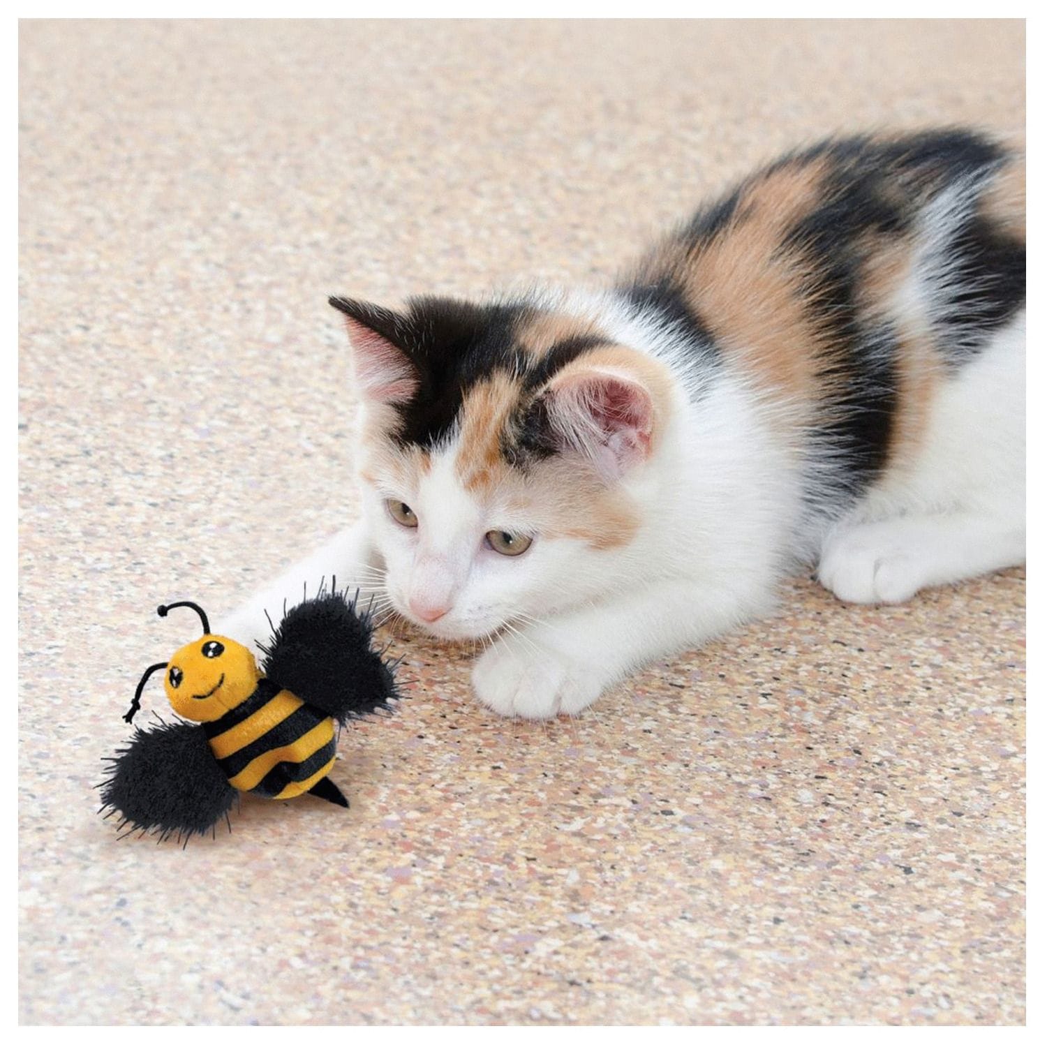 De Better Buzz Bee van KONG is volledig opgevuld met Noord Amerikaans premium kattenkruid. De grappige vorm van dit bijtje is favoriet bij alle katten. Het bijtje heeft een knisperende, vleugels en verende voelsprieten. Het knisperende geluid wekt interesse op bij kittens en katten. Deze unieke vorm wakkert het jachtinstinct aan.
